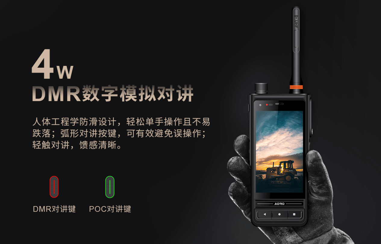 AORO遨游M6具有DMR数模对讲功能,在网络中断、网络覆盖不足、突发自然灾害情况下,可及时满足近距离无网络对讲需求。该DMR数模对讲功能支持标准定义的所有语音和数据业务,以及各种加密方式。作为专业机,AORO遨游M6高功率为4W,低功率为2W,通话距离较远。