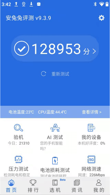 使用安兔兔测试AORO遨游M6 4G版,AORO遨游M6下载速度为227Mbps,峰值速度为230.1Mbps,上传速度为88Mbps,峰值速度134.4Mbps,其网速相当于300Mbps宽带,这个速度,无论抢红包、玩游戏抑或是网购,都能切实体验到畅快的速度。