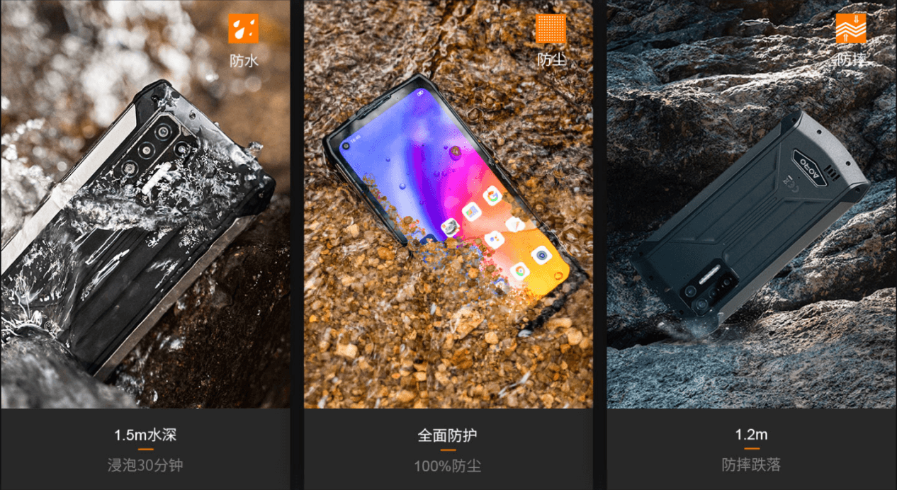 AORO遨游A系列都经过了严格的MIL—STD—810G军工防护标准测试,可以在-20℃至60℃的恶劣环境中正常工作,都可以通过30分钟1.5m水深测试、1.2m防摔测试以及防尘测试,具有IP68等级。